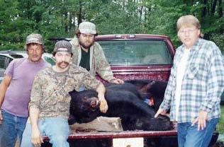 The Bathtub Bear By Dan Infalt I got a little excited when a good friend, Dave, showed me a picture of a monster bear that was coming into a friend's brother's backyard deer feeder near Wausau, Wisconsin. The feeder was an antique bathtub filled with corn. The bear in the picture had two legs on each side of the feeder, it looked like a big black bus parked over the top of the tub. The next picture was of a big old bear tooth. Dave explained the $400 camera was ruined, the bath tub bear had chewed the lens right off of the camera. The only thing salvaged was the film. Then Dave says nobody in his group drew a tag to hunt this beast and he is living on the public property surrounding the cabin where he was filmed. By now, my mind is going a million miles a minute trying to think of some clever way to trick Dave into letting me hunt this incredible bruin. Suddenly Dave breaks the momentary silence by saying, Don't you have a kill permit for this year? Why don't you come up here with your bow and whack that beast? It took me a few seconds to regain my speech, then I just kept mumbling. The very next weekend found me heading for Wausau with a truck load of bear goodies. When I got there I met Dave's brother, Bob, who took me to the feeder where the bath tub bear was hanging out. There were monster paw prints all over the tub and ground. I followed a beaten path through the woods till it entered a swamp about a 1/4 mile from the cabin where I thought the bear was probably bedding. I found a good area where several different trees could be bowhunted out of with consideration for the daily wind directions, and set up a bait. The bait was very close to the trail that the beast was traveling on, I had a very good feeling about this spot, but I set up a second spot in a different area just in case. Bob made me a happy hunter when he offered to bait for me every other day. I traveled back the next weekend to check on things and was pleased to find out the monster bear was hitting the bait daily leaving his huge tracks in the mud. It looked like he had the bait to himself. I have noticed that when big bear bed close to baits they keep other bears from hitting that bait, they kinda, take it over. Bob had seen another bear near his friends cabin with a white "V" on its chest. He was sure it was coming in to the back up bait. I told him, its the bath tub bruin, or nothing. I got up really early opening morning and made the trip up to Wausau by 10 AM. I met Dave and his brother at the cabin. Bob said, I got some bad news. Your bait hasn't been hit all week, and a large group of bear hunters set up there campsite 100 yards from your bait. I went out there and looked the situation over. Yep. the bait had not been touched. I could hear the campsite 100 yards away. I went to check on my secondary bait, suddenly the white "V" bear sounded like a keeper. However, bad news turned worse. There were two hunters set up near my 2nd bait. One hunter covering each trail to and from my bait. I am sure these guys didn't know my bait was there, they just saw all the bear sign and set up. I thought about how I was thinking nothing could ruin this hunt, heck I was even looking at taxidermy catalogs trying to pick out a form. I felt like a fool. I walked back to the cabin hanging my head, like a dog that had been kicked. My two buddies were half asleep, tired from there night shift jobs. It was 12:00 midday, I sat there for a while, but couldn't stand being in the cabin. I said go ahead and get some sleep, I am going to go sit in the bath tub bear stand for the rest of the day. I crawled up into my Lone Wolf hang-on and got comfortable. I could see the hunters in the campsite 100 yards away. They were playing loud music and partying. I was just starting to wonder what else could go wrong when the 1st few rain drops hit me. I stared up at the heavens and cursed my foolishness, how could I not realize this was going to happen? Its public land. I am hunting 100 yards from a dirt road, what did I expect. I glanced back down towards the earth below and was greeted with an unbelievable site; It was the bath tub bruin! He was walking straight at me at 1:00 in the afternoon. I slowly moved for my bow that was resting in the bow holder on my stand platform. By the time I slipped the bow out and slid to my feet the monster had walked right trough my bait site and just kept heading up the trail, straight towards the corn feeder. I suddenly realized, He was still using this trail, he was just preferring to eat the corn over my hard candy and fruit. I quickly drew the bow and made the shot in one fluid motion, just before he disappeared into the thick canopy. In a moment the bear was gone. I sat down, trembling, did it really happen? Did I get him? It was like someone started turning the volume back up. I came back to reality and could hear the nearby party and music, then suddenly there was an erie death cry from where the bear ran. The beast was mine, and I knew it. I took my tree stand down after sitting and just taking it in for a while. Packed up my stuff and headed back to the cabin. I walked in an hour before dark surprising the two sleeping buddies of mine. Then Bob starts to lecture me about hunting till dark...Bob didn't know me really well. "You have to sit in that stand till there ain't no shooting light left" he growled at me. I went along with the flow and said, "But its raining!" "What? You can't take a little rain" Bob screeched. Then Dave smiled and said, "How big?" ...Dave knew me well. I smiled back and said, "It's the bath tub bear. He is at least 300 pounds." When we got to the bear, none of us could believe the size of it. We could barley move it. Later at the check-in station, the slob bear weighed in at 500 pounds. I got a life size mount of him and a lifetime of memories. The skull measured 20 5/16". The bathtub bear weighed 500lbs and had a 20 5/16" skull |